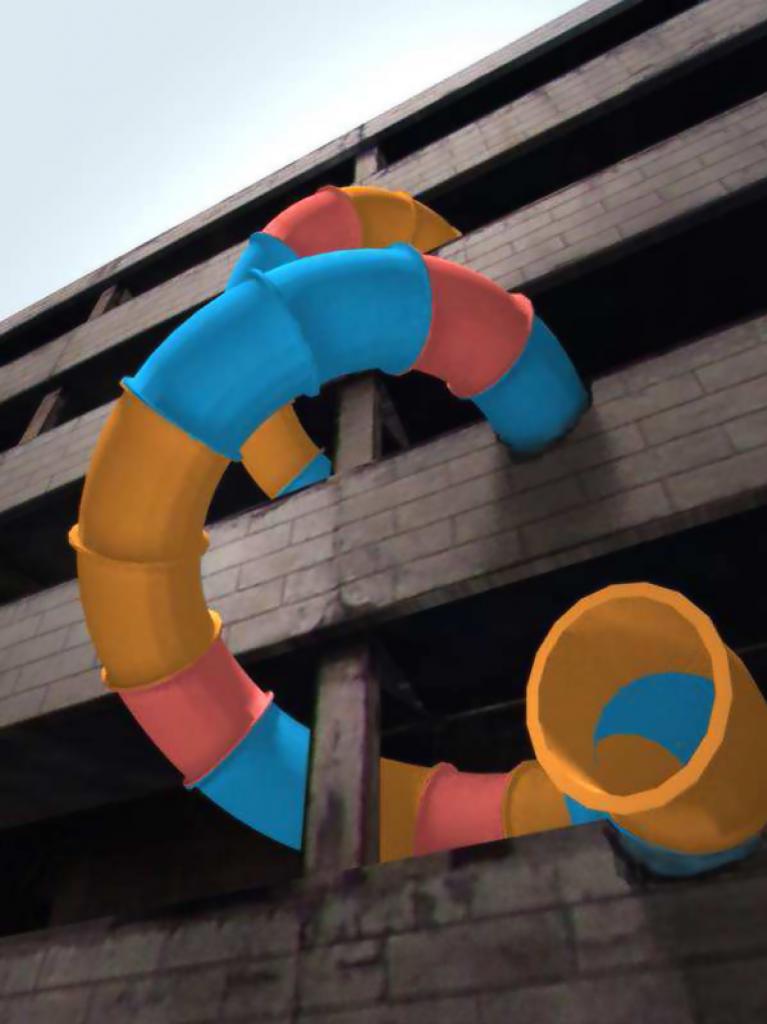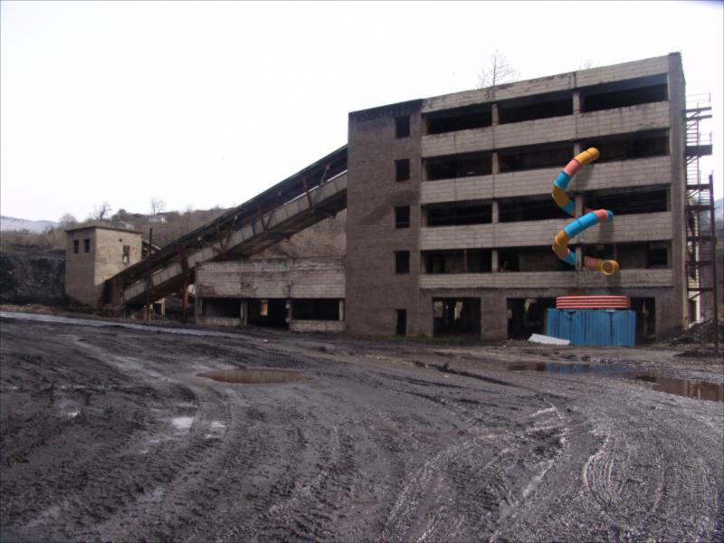 We’ve found the building that was the pavement factory in previous times. The huge rectangle building is connected 30 degrees inclined narrow corridor which once served as the space for moving the lorry with industrial raw materials. I learnt all these in my childhood. Constructing the dialogue with this space the image of kids attraction arouse in my mind.