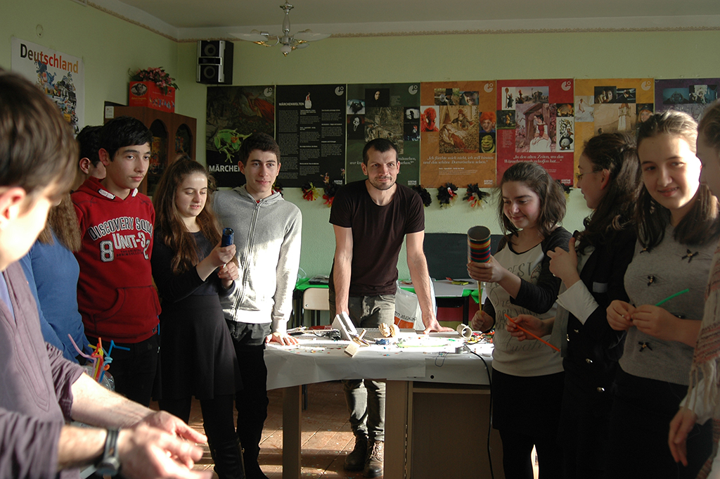 Invited artist-instructor for 2 days workshop on the topic of Invention at the partner schools of the Goethe-Institut Georgia. The framework of 4 days seminar was initiated by Goethe-Institut as a part of the program "Erfinderland" in cooperation with Shuqura museum.