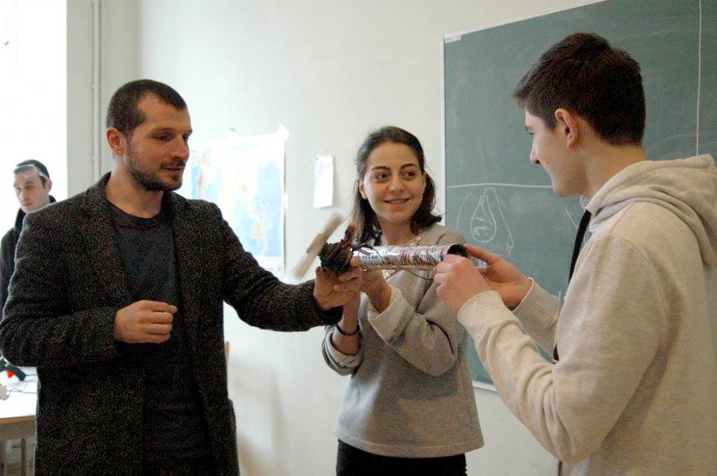 Invited artist-instructor for 2 days workshop on the topic of Invention at the partner schools of the Goethe-Institut Georgia. The framework of 4 days seminar was initiated by Goethe-Institut as a part of the program "Erfinderland" in cooperation with Shuqura museum.