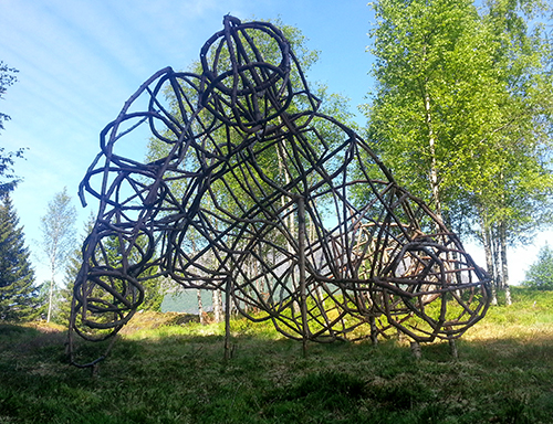 In this project I bring the object back into the natural environment, which was initially converted to the trigonometric language (to the digital 3D environment). The object represents human hand that is composed of natural shapes of row material, fallen branches and leftovers found in Norwegian forest.