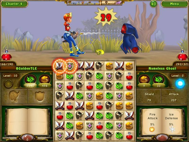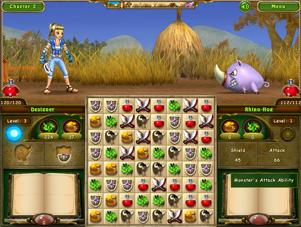 Puzzle Hero is an addictive and exhilarating puzzle-RPG (role playing game), in which you defeat more than 50 mystical 3D monsters, while you charge through picturesque environments. Hero in you must save your kidnapped brother, Tristan, from the evil spell of sorcerer Zalock, the ruler of Kindgom of Fog, and his Army of Darkness. Outwit the puzzle to battle the mystical monsters guarding the road to Kingdom of Fog. Increase your power by gathering gold and using it to shop for magical amulets, vast selection of weaponry, armor, and clothing accessories.